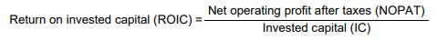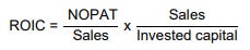 ROIC can be broken down into a measure of margins, or profitability per unit (NOPAT/Sales), and capital efficiency (Sales/Invested capital).