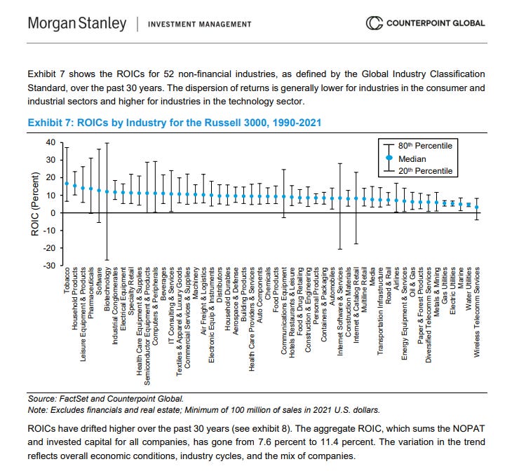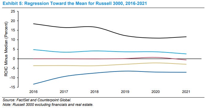 Regression to the mean is powerful, those that sustain high ROIC are rare.
